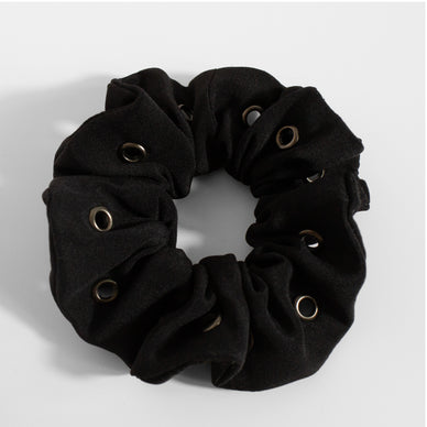 In a lush silk with stainless steel accents, the Spoke Scrunchie stands out on its own or paired with your favorite silver stack.